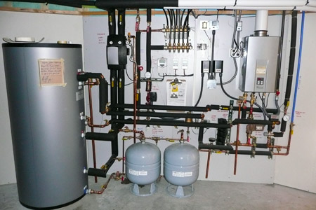A solar hydronic system that heats the domestic hot water and also the radiant floors! This one is off the grid. |