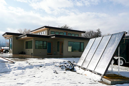 A Passivehaus with solar hydronic panels - ground mounted. |